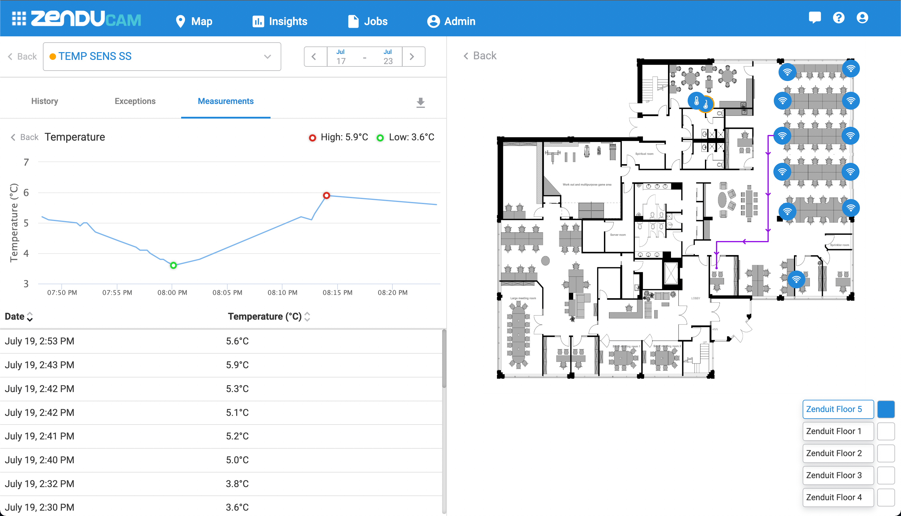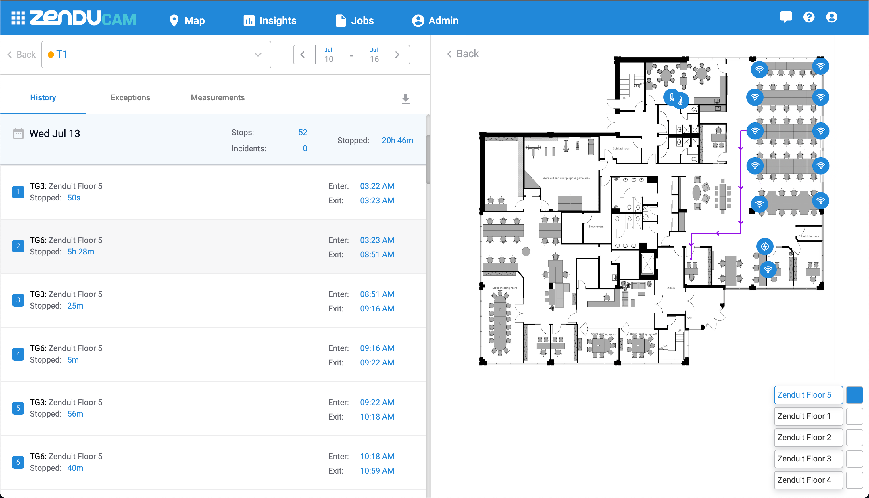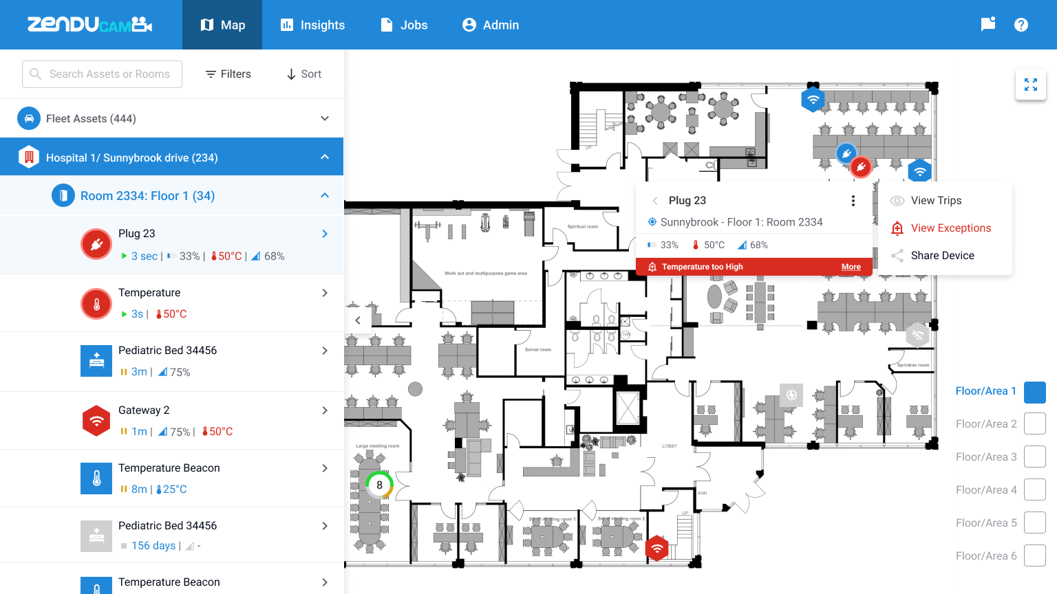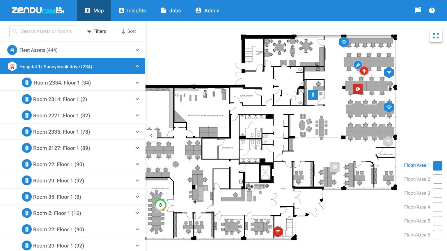 Zendu Indoor facilitates real-time visibility of every asset, tool, and material within a facility. All tracked assets are highlighted in real-time on a customizable floor plan to an accuracy of 50 centimeters from any device. Visibility into the location of assets enables an organization to better plan work processes, manage inventory, reduce search times, restrict bottlenecks, and simplify workflows.