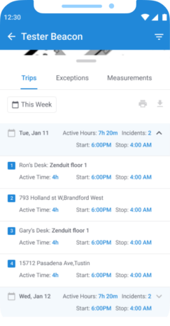 Advanced positioning capture technology from Zendu Indoor can be configured to send an alert or notification when an asset enters or exits a designated zone. This technology also identifies the amount of time an asset spends in each location while recording motion data for later review. Zendu Indoor also logs changes in location data over time, which can be used to evaluate wait times or as the foundation for intelligent office automation.