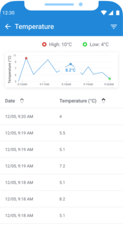 Easily view the status of battery level of the beaconTEMPERATURE STATUS